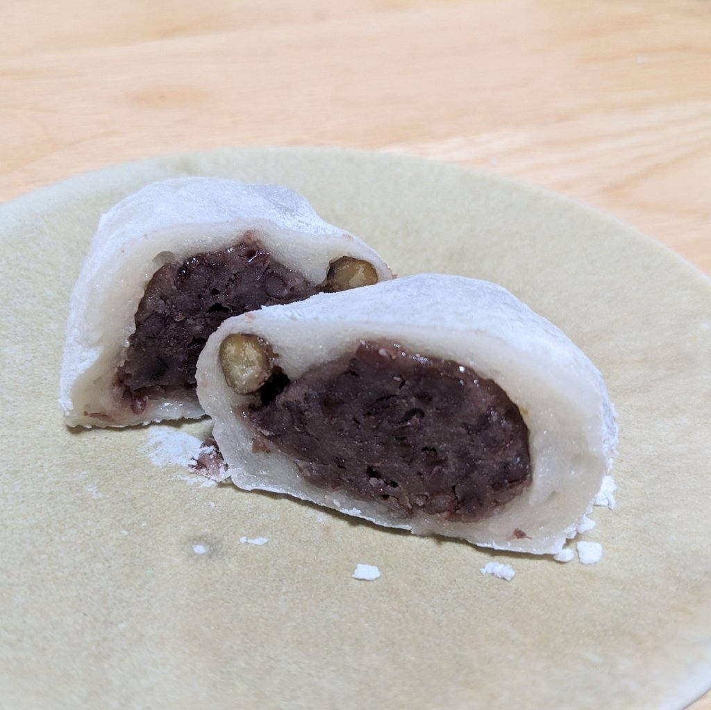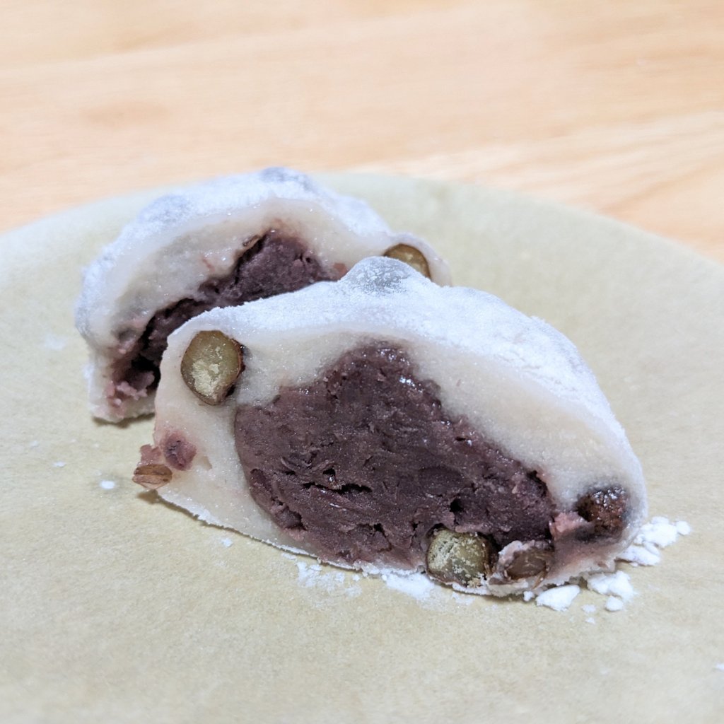 こちらも厚めの餅生地。赤豌豆がごろごろ入っていて存在感あり。