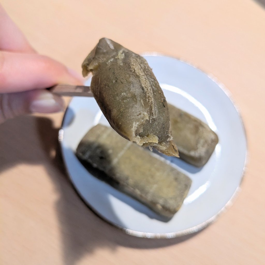 焼いたかんころ餅は柔らかに。食感はもちもち感よりねっとり感が強い。