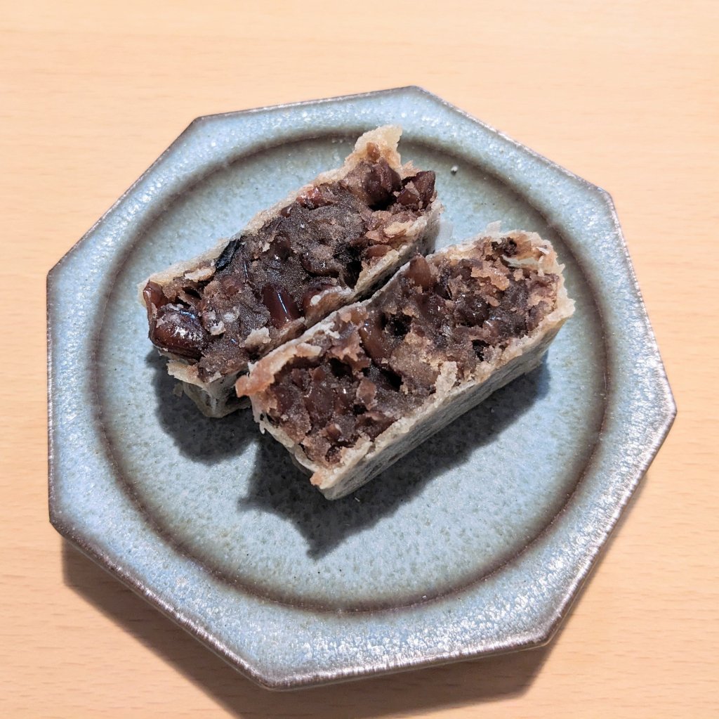 黒豆きんつばを食べてみる。ところどころに黒豆が顔を出す。思ったより黒豆の存在感は無く、普通の小豆のきんつばに近いかも。しっかりとした甘さ。