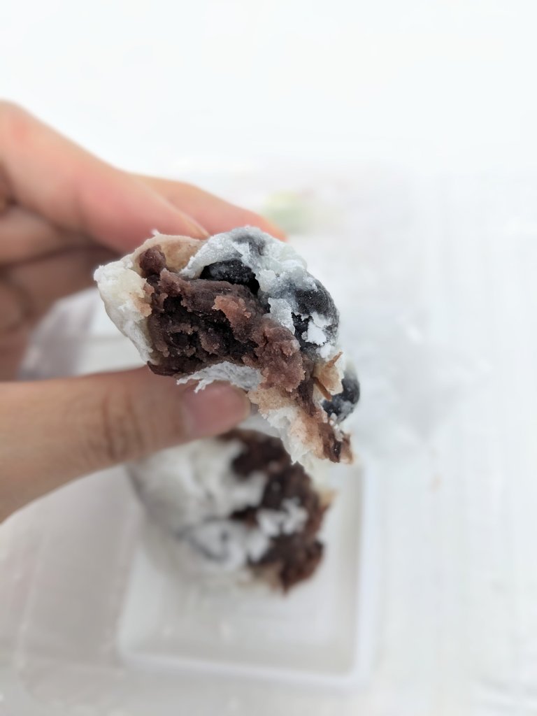とろけるような餅生地がやわらかいあんと一体になってとてもくちどけが良い。