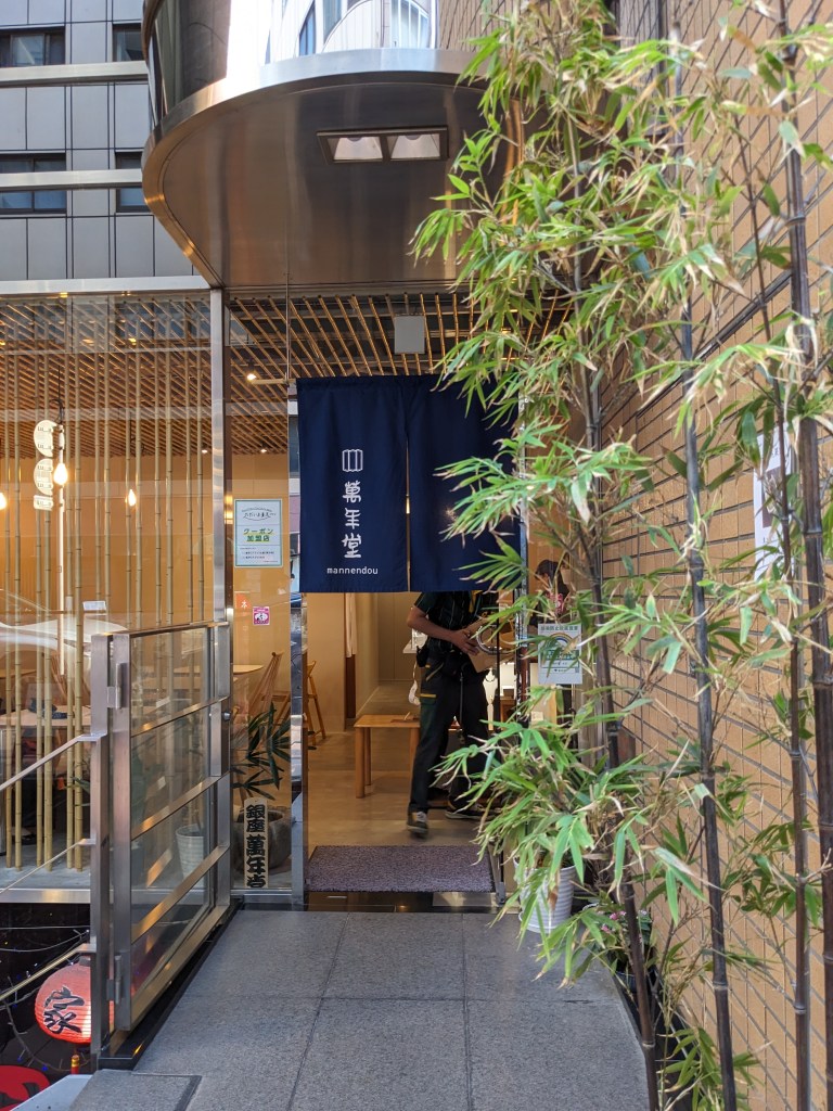 銀座七丁目。大通りから少し外れたところにある老舗和菓子屋【萬年堂】に立ち寄る。