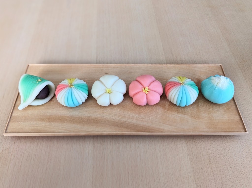 これだけの色の練りきりを着色し、かたちを作り、仕上げの金箔を載せて、、、