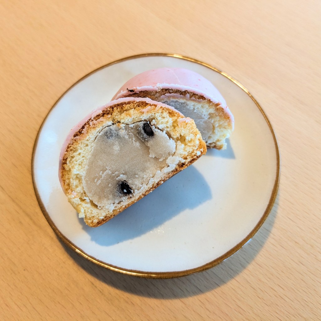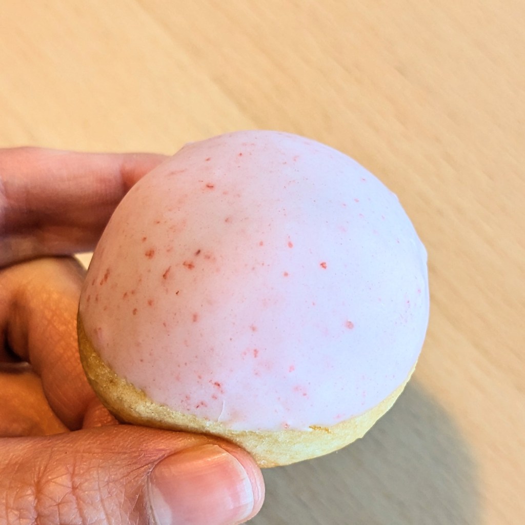 白あんの中にチョコレートが入っていて、外側にはストロベリーチョコのコーティング。