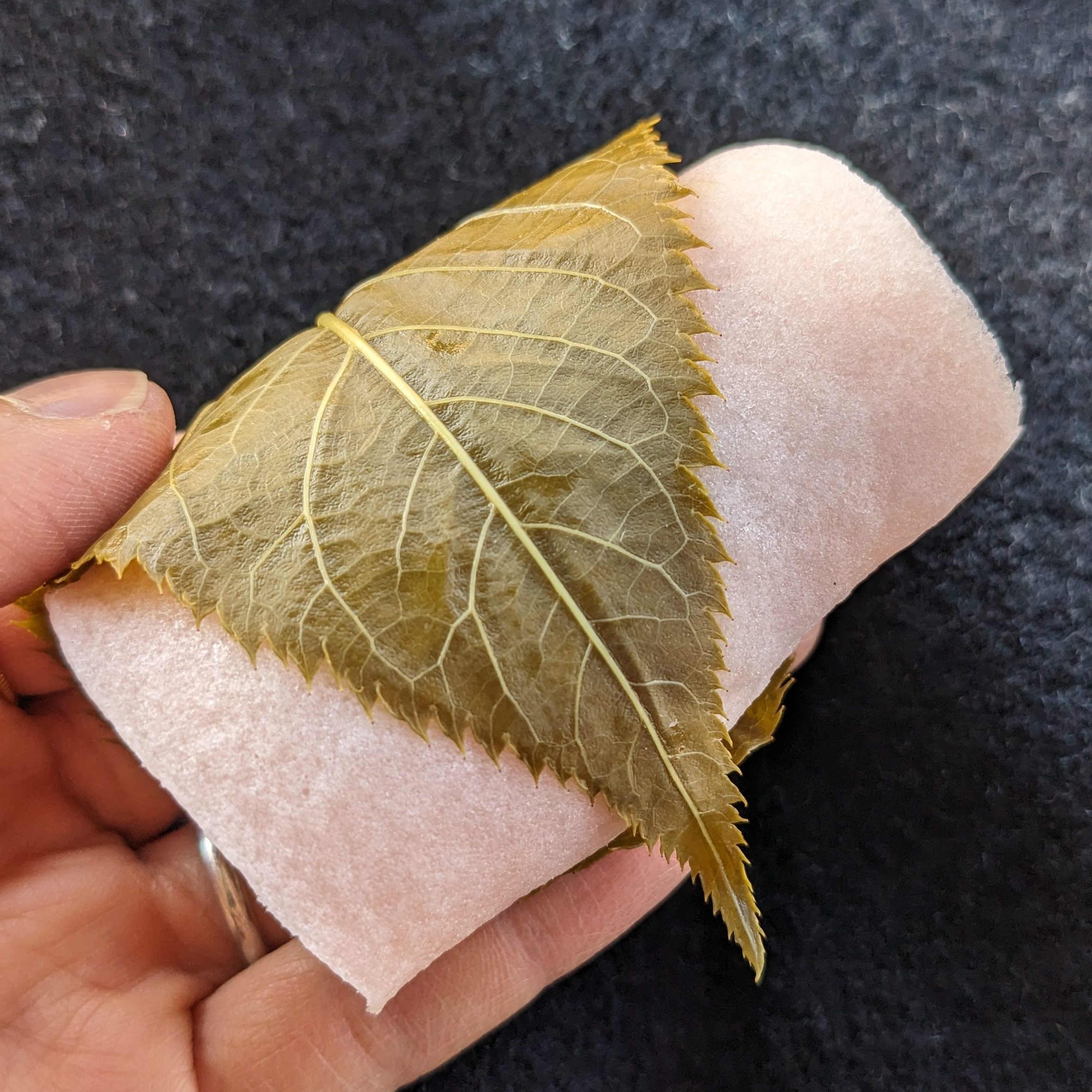 こしあんの甘さ、桜葉の塩味と香り。何度食べてもやっぱり美味しい。
