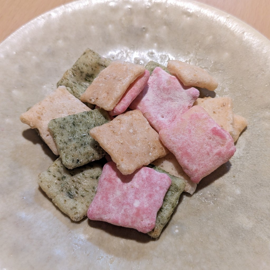 確かに色は3色になっているけれど、平たいひなあられって新鮮。