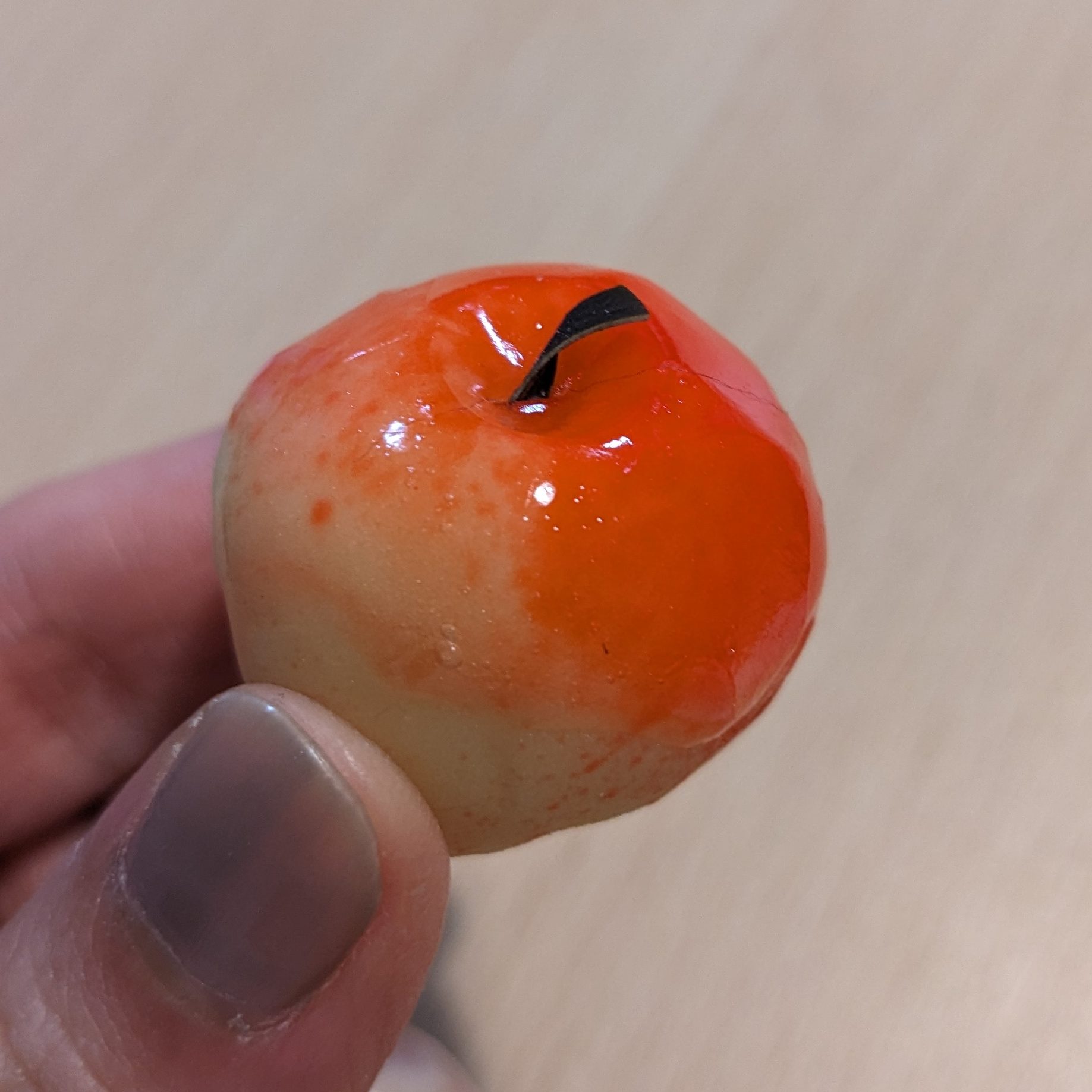 みて見て。つやっつやの林檎。昆布がヘタになってるの。