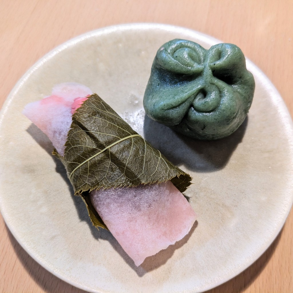 桜餅は塩気つよめ。薄皮はもっちもちで存在感あり!あんはあっさりとしています。