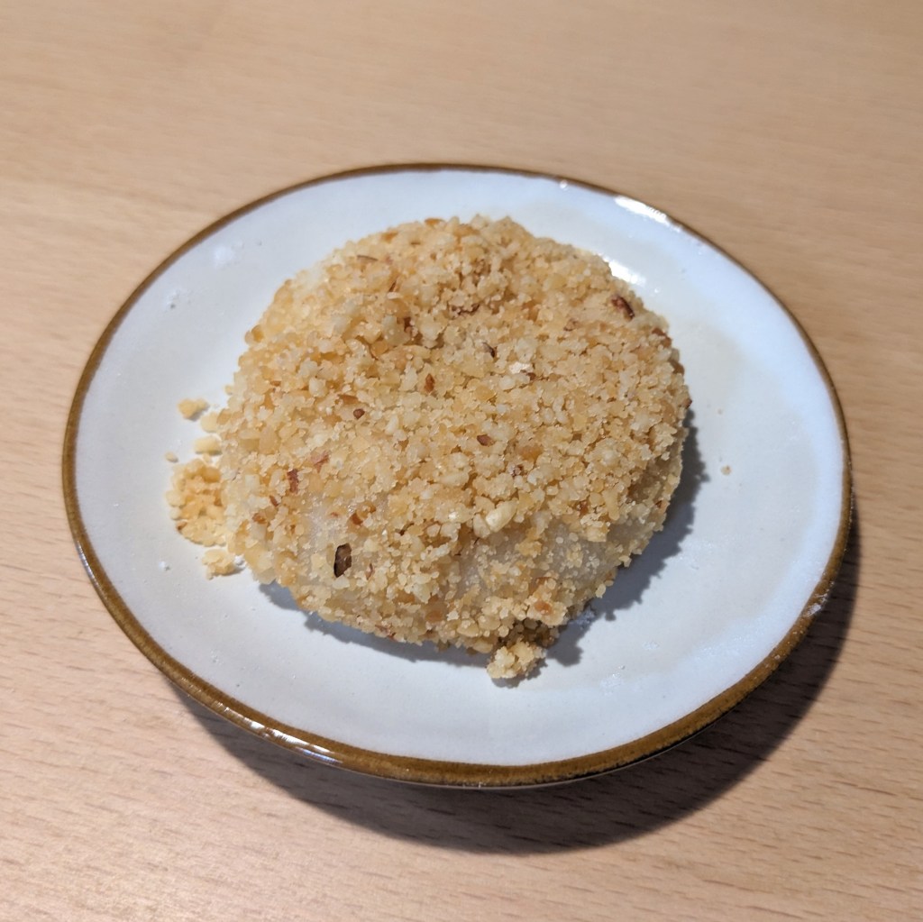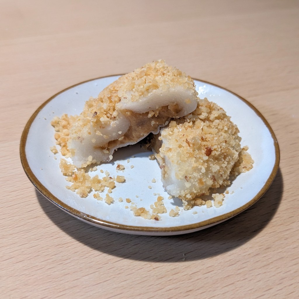 餅は柔らかく、ピーナッツクリームが濃厚。ちょっと柔らかめのピーナッツバターといった感じ。甘じょっぱさとピーナッツのコク。たまらん!