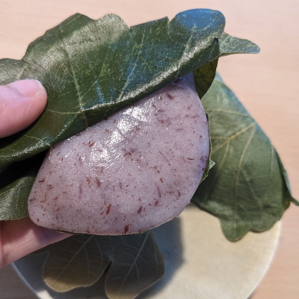 粒あんの柏餅、小豆の風味をしっかりと感じられて好きだなあ。