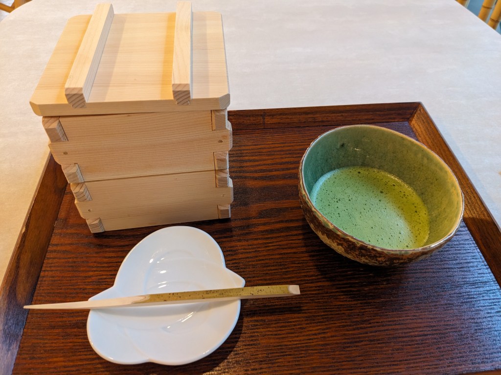 上生菓子のセットとも迷ったが、この日頂いたのは御目出糖とお抹茶のセット。