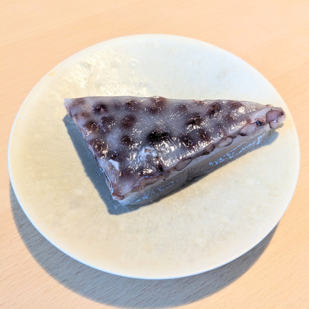 上は小豆の入った外郎で、下はやわやわのわらび餅、という2層になった水無月。本蕨粉に蓮根澱粉も入っているようで。わらび餅が柔らかすぎて、ちょっと食べづらかったけど、お味は良いです。