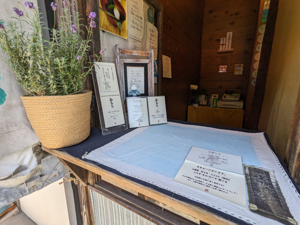 小さなカウンターで生麩と麩まんじゅうを売っている。