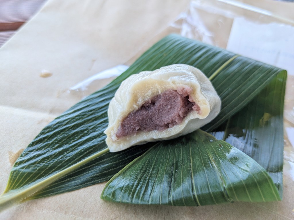 公園まで歩き、麩まんじゅうをいただく。