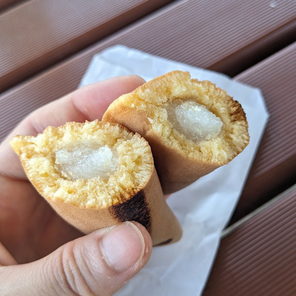 どら焼きはフワフワ生地で、粒あんはしっかりと甘みあり。焼色きれいだなあ。